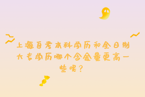 以上就是关于上海自考本科学历和全日制大专学历哪个含金量更高一些呢?的相关介绍,希望对大家有所帮助!更多关于上海自考学历的疑问,可咨询